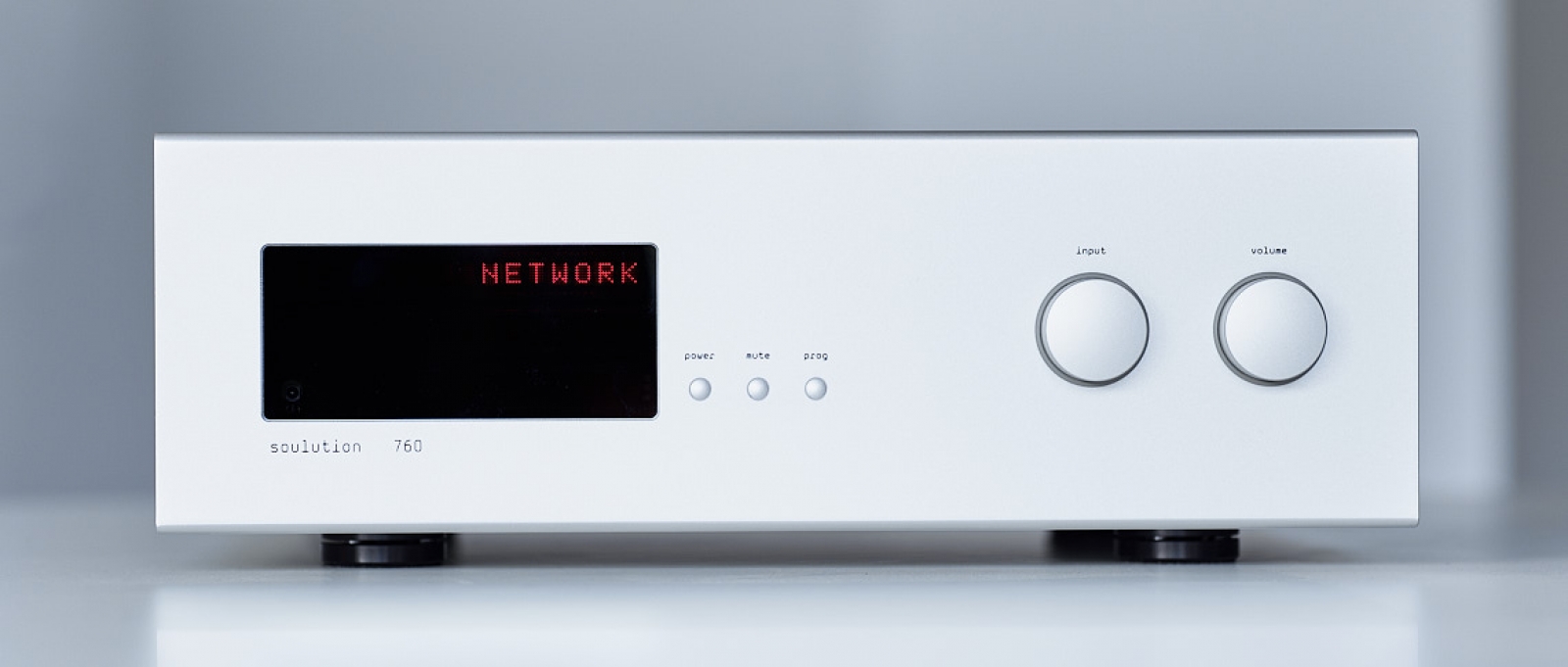 A készüléket nézve aligha gondolna erre a felületes szemlélődő. A 760 pontosan úgy néz ki, mint a Soulution többi készüléke. Bauhaus-stílusban megépített szögletes doboz, ami már-már a Soulution védjegyévé vált, matt ezüst fémház, kis ablakban egy LCD kijelzővel az előlap bal oldalán. A többi Soulution készülékhez hasonlóan ugyanúgy három gomb található rajta, egy hálózati kapcsoló, egy némítógomb és programmód váltó gomb (ezzel állíthatja a csatornegyensúlyt, választhat bemenetet, szabályozhatja az előlapi kijelző fényerejét, stb.). A menüopciókat a három funkciógomb mellett található két nagyobb gomb közül az elsővel, a „Select” feliratúval válthatja. A Prog gombot megnyomva megjelenik a menü a kijelzőn, a Select gomb forgatásával jelenítheti meg sorban a választható menütételeket (ezek a kijelzőn jelennek meg egymás után), a gombot megnyomva választhatja ki a módosítani kívánt menütételt, majd a gombot ismét elforgatva jelennek meg a választható értékek a kijelzőn. Ezek közül is a gombot megnyomva választhatja ki a kívánt értéket. A Prog gombot ismét megnyomva lép vissza a készülék a normál üzemmódba. (Ugyanezt a műveletet a tartozék távvezérlővel is elvégezheti.)